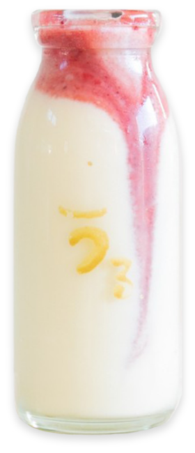 濃厚な味わいのミルクシェイクにイチゴや抹茶などのソースで味付けをし、可愛いらしいビンに入ったシェイクです!